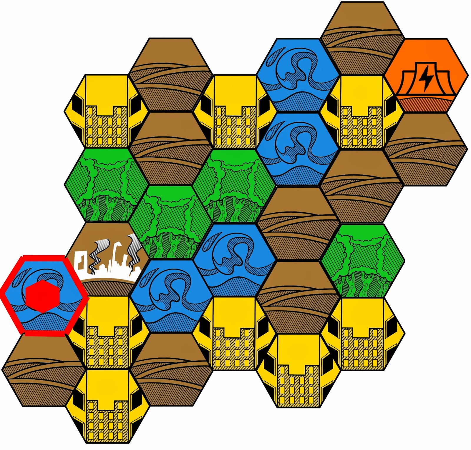 So you should be able to tell the different tiles apart; Water, Plant, City, Open Land, and Power Plant (with unfinished art) are all represented here.